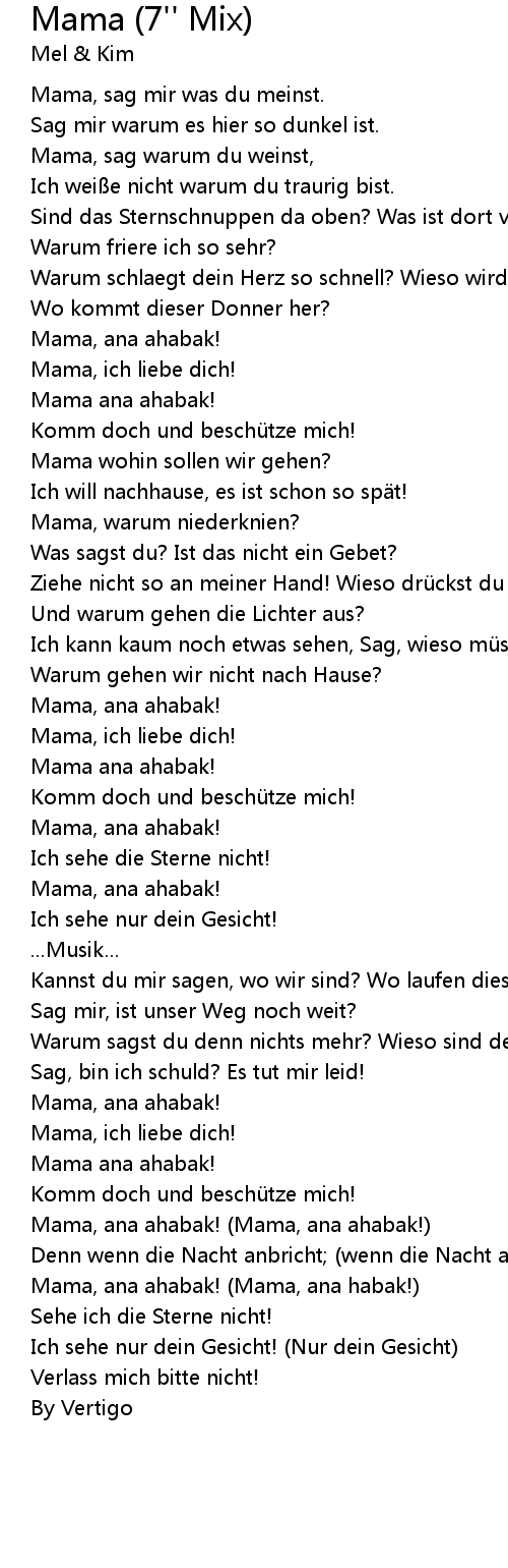 | [00:10.17] | Mama, sag mir was du meinst. |