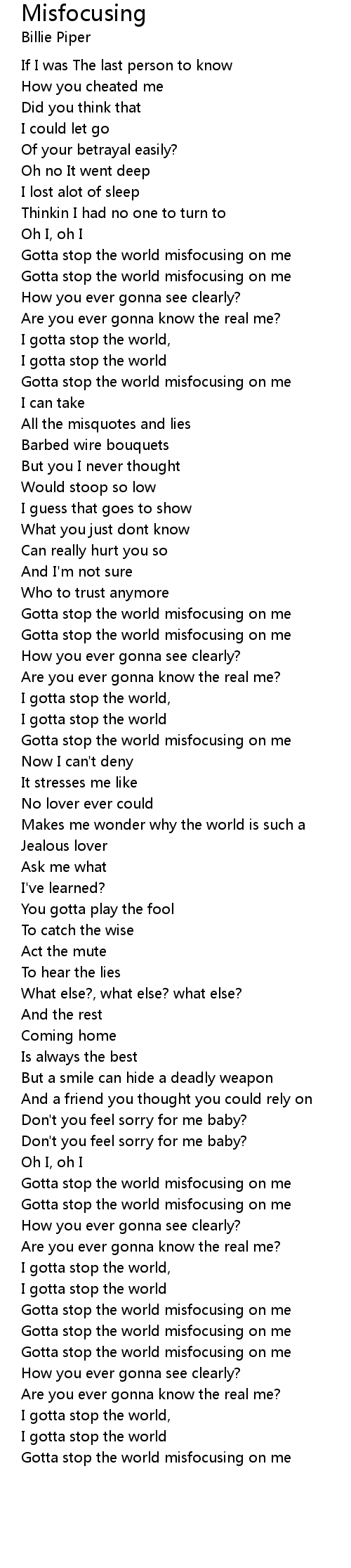 Gotta stop the world misfocusing on me