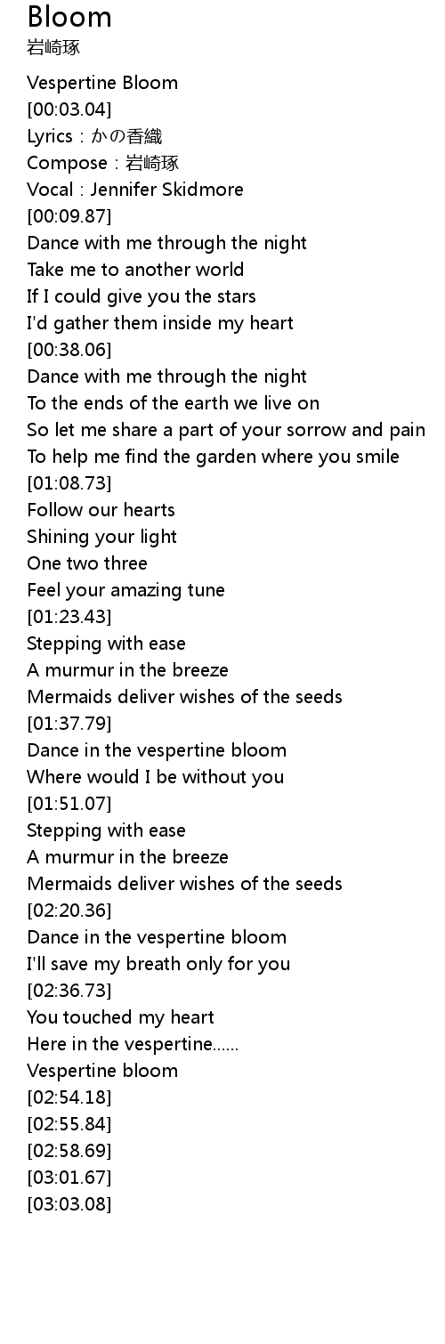 | [02:46.59] | Vespertine bloom |