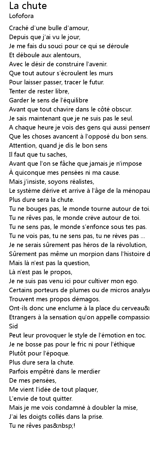 Tu ne sens pas, le monde s' enfonce sous tes pas.