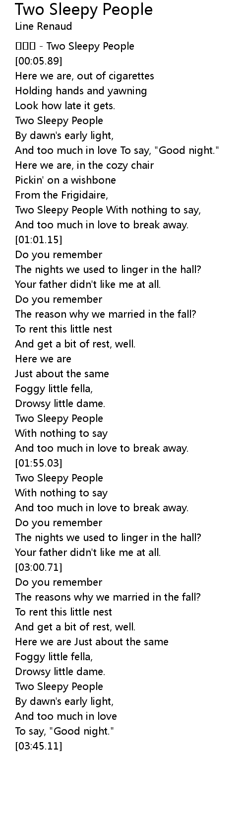 | [01:42.01] | Two Sleepy People |