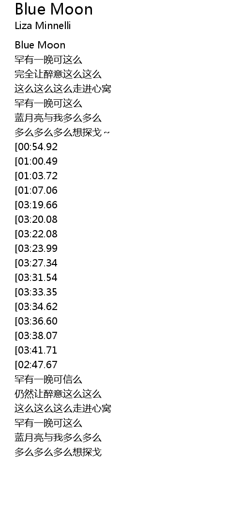 | [00:04.56] | Blue Moon |