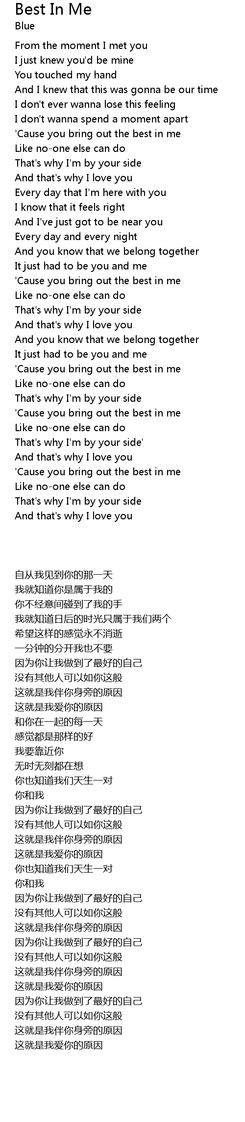 'Cause you bring out the best in me |