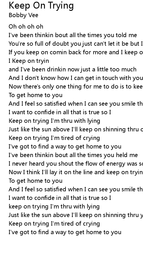 Now there's only one thing for me to do is to keep on tryin |
