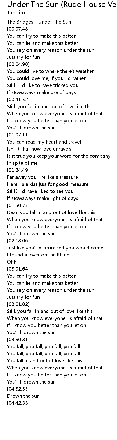 | [00:01.25] | The Bridges - Under The Sun |