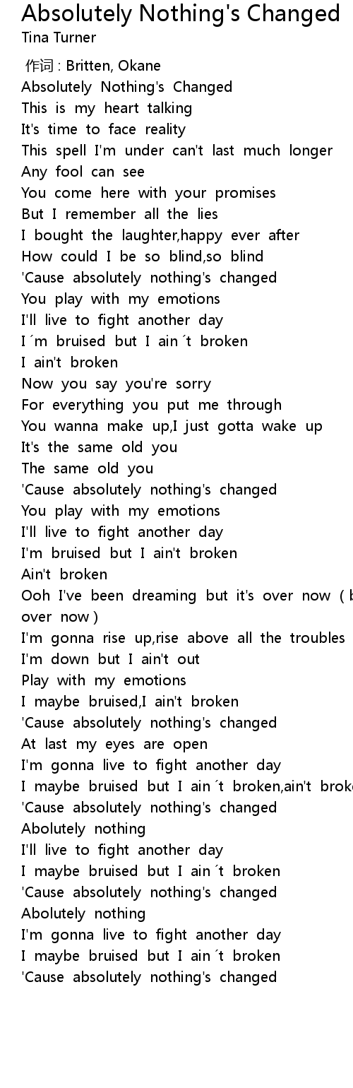 | [00:09.686] | Absolutely Nothing' s Changed |