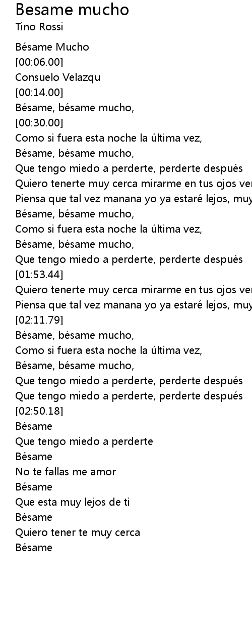 | [01:55.25] | Quiero tenerte muy cerca mirarme en tus ojos verte junto a mí |