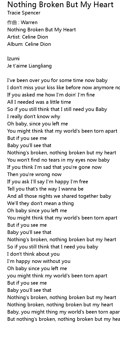 | 歌曲 | Nothing Broken But My Heart |