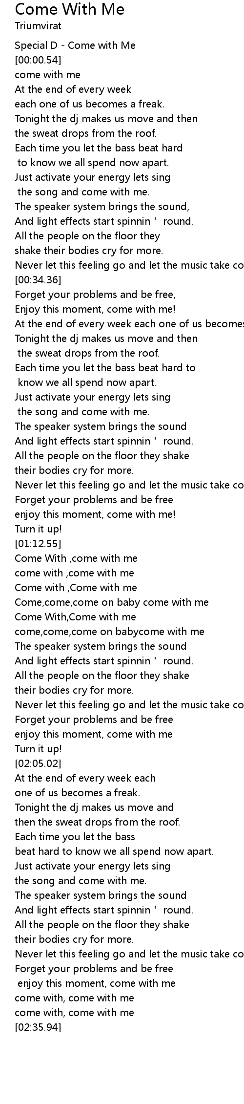 | [00:31.31] | Never let this feeling go and let the music take control. |