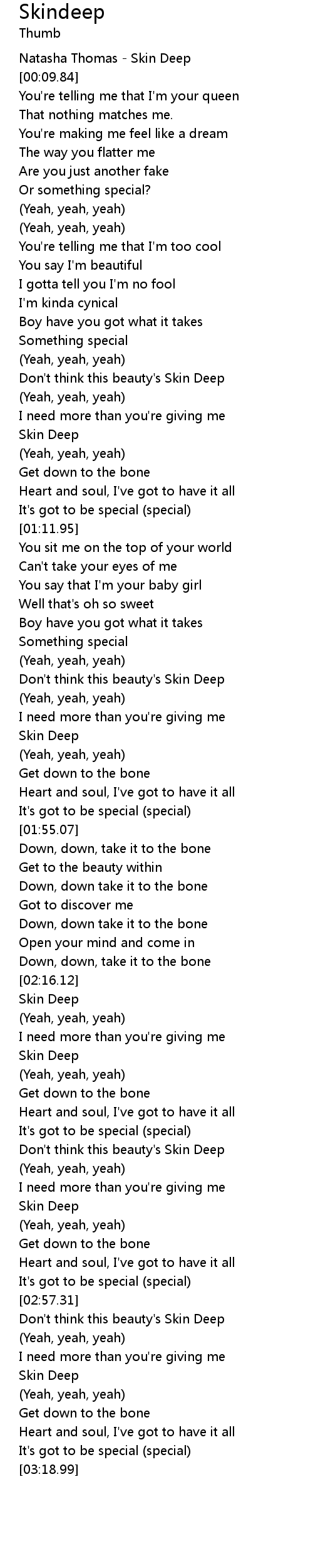 | [02:59.18] | Don't think this beauty's Skin Deep |