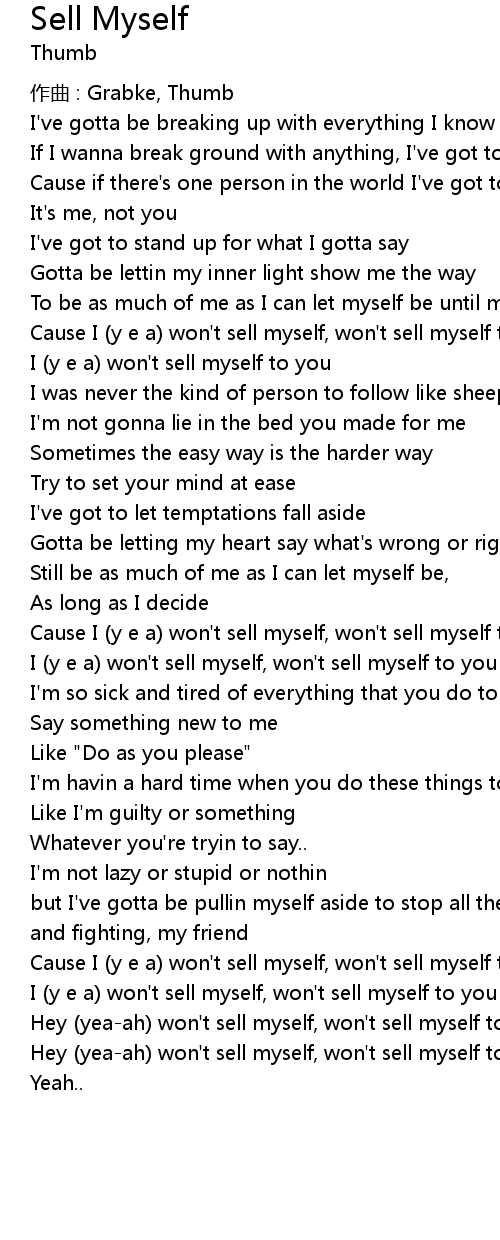 | I y e a won' t sell myself, won' t sell myself to you | |