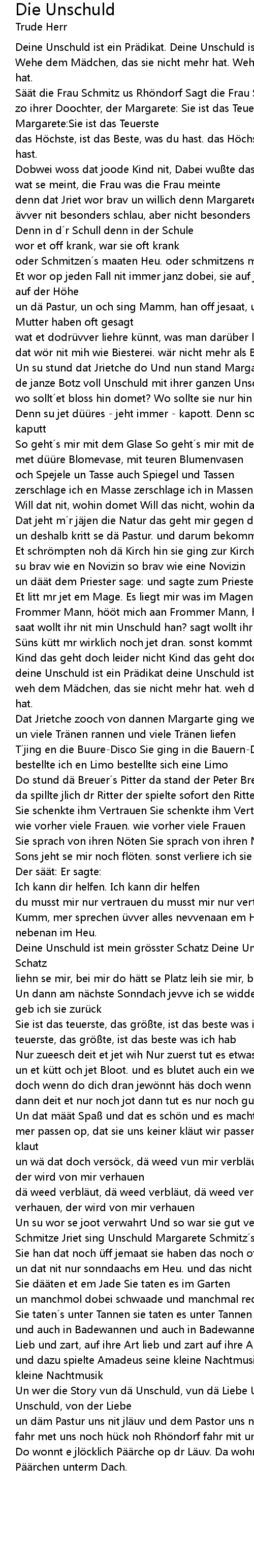 | Un wer die Story vun dä Unschuld, vun dä Liebe Und wer die Story von der Unschuld, von der Liebe | |