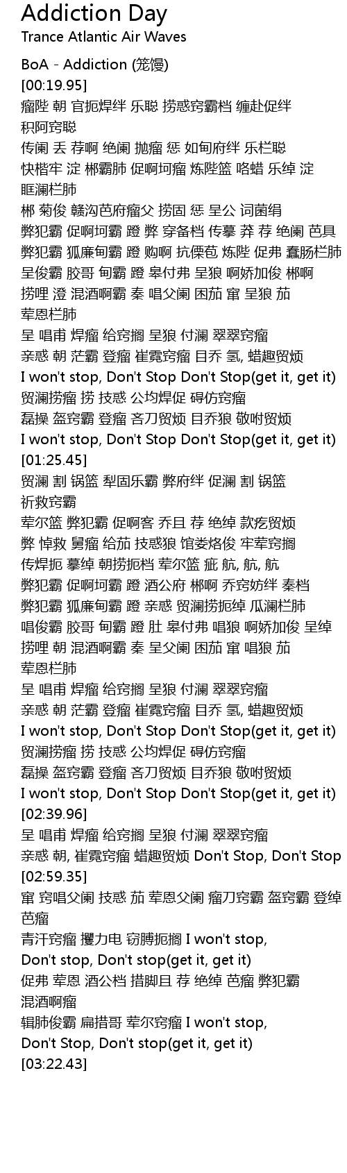 | [00:00.00] | BoA - Addiction (笼馒) |