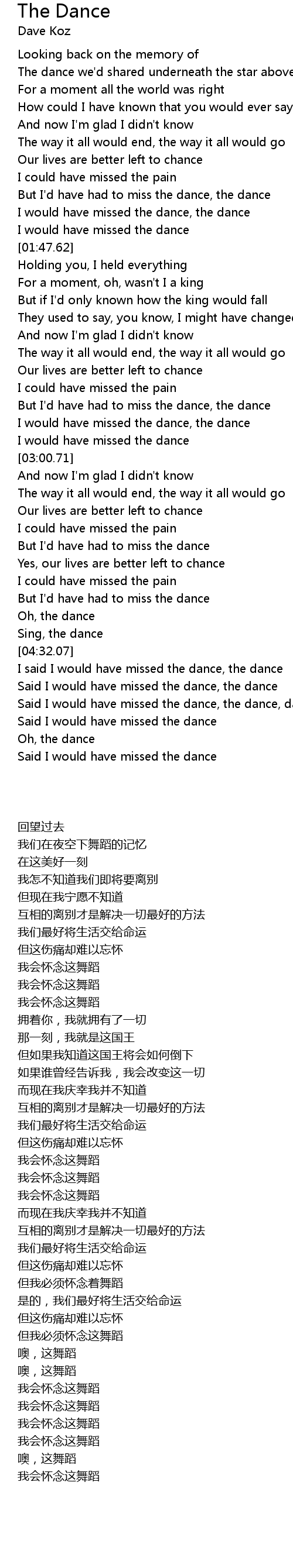[04:47.53] Said I would have missed the dance, the dance, dance