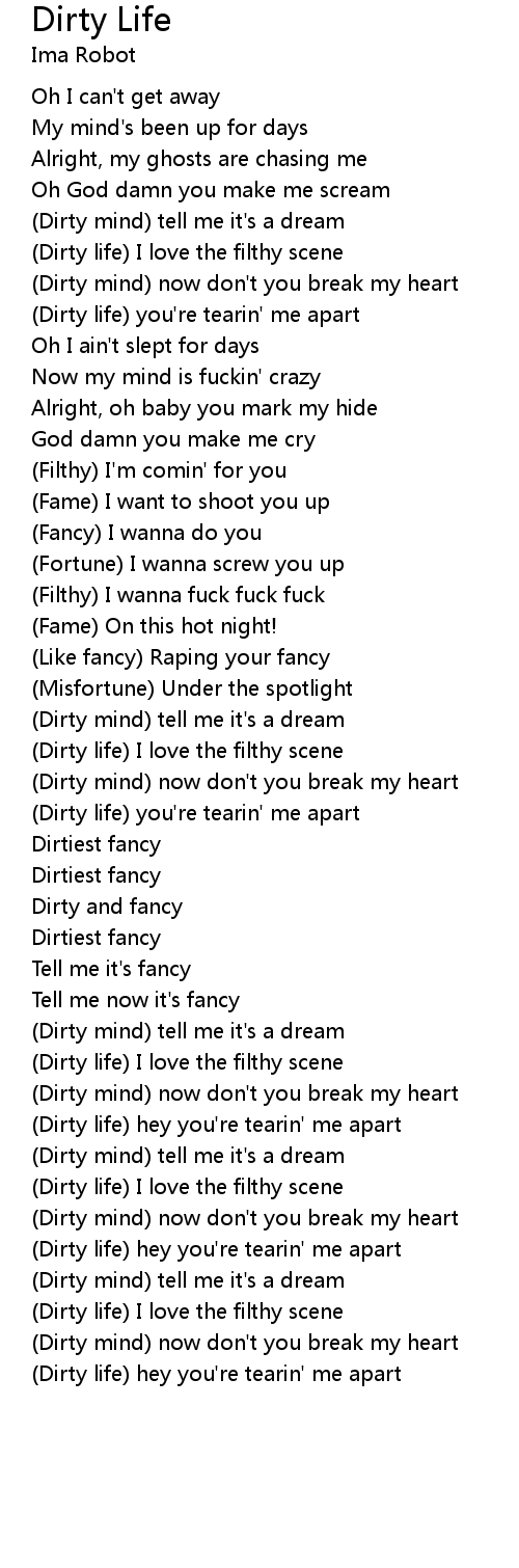 | (Dirty life) hey you're tearin' me apart | |