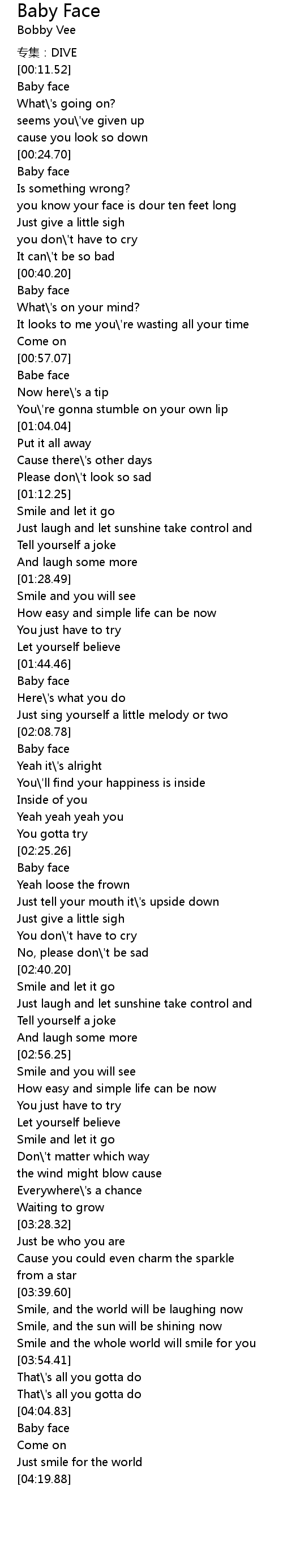 | [00:25.24] | Baby face |