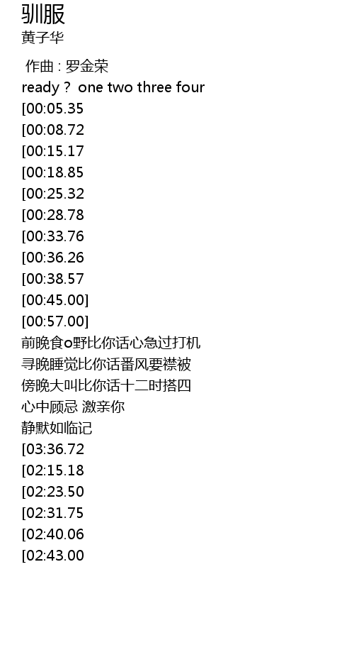 | [02:09.55][00:38.57] | 自动驯服 如玩偶 |