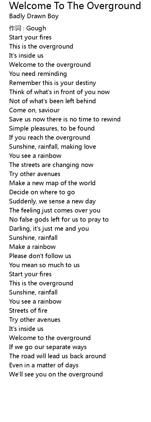 | 歌曲 | Welcome To The Overground |