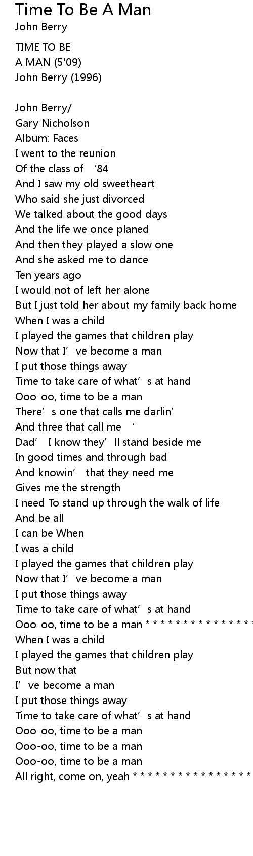 | 歌曲 | Time To Be A Man |