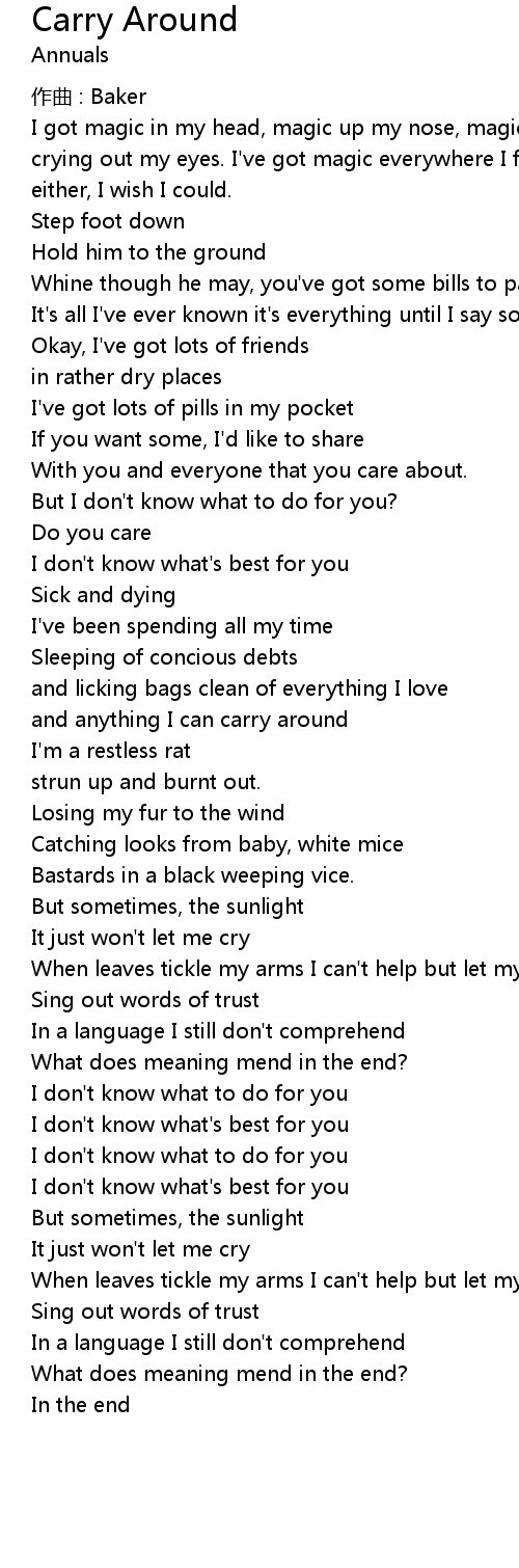 | I got magic in my head, magic up my nose, magic coming out my fingers, magic crying out my eyes. I' ve got magic everywhere I fucking look. I can' t fight it either, I wish I could. | |