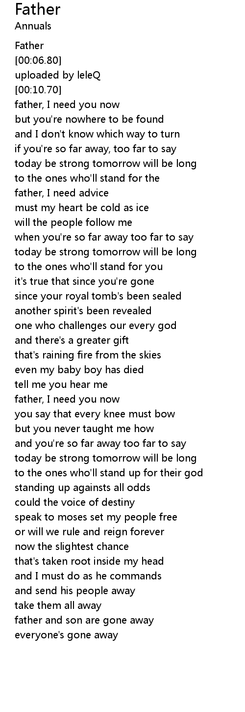 | [00:15.09] | father, I need you now |