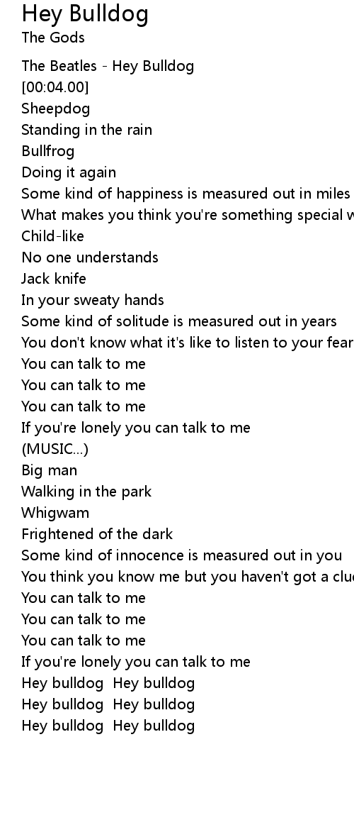| [02:30.00] | Hey bulldog Hey bulldog |