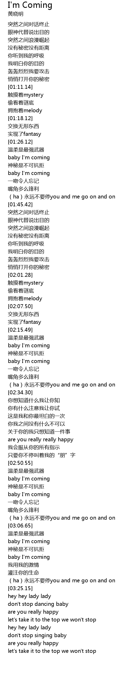 | [03:02.41] | (ha)永远不要停you and me go on and on |