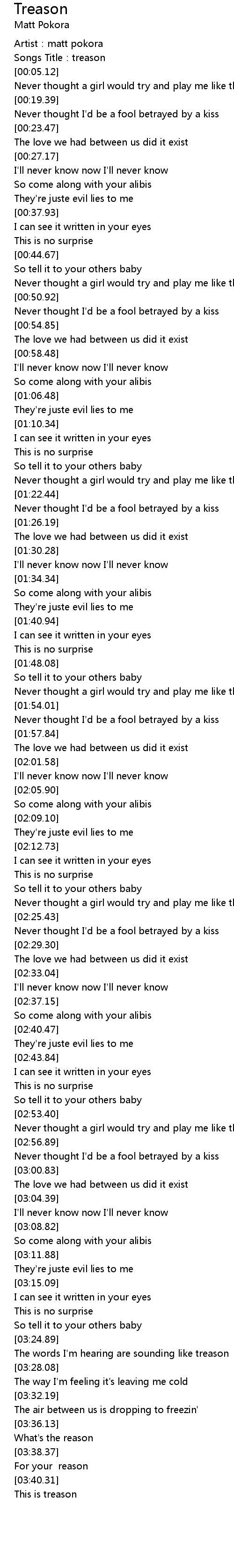| [00:03.51] | Songs Title: treason |