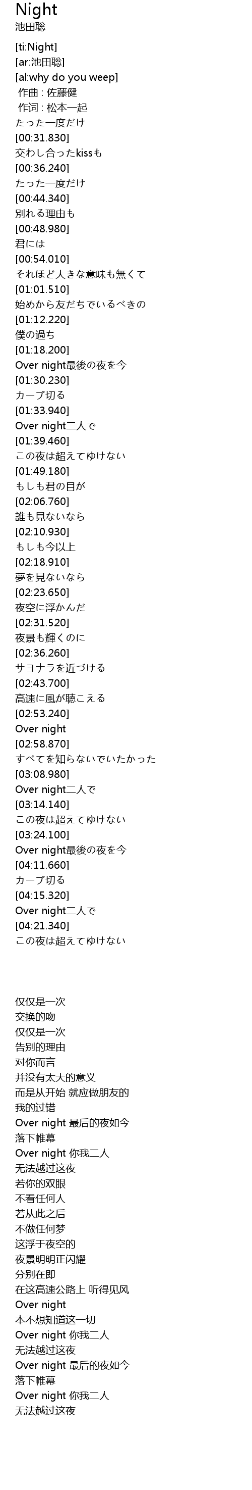 | [04:04.800] | Over night zuì hòu yè jīn |