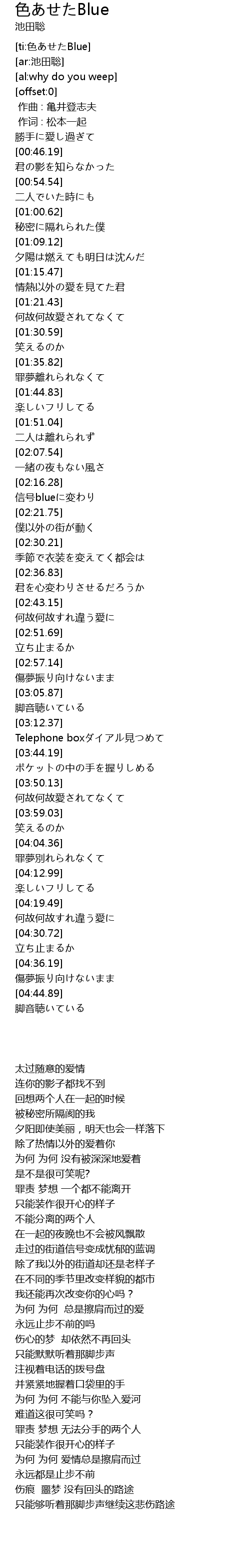 | [03:39.02] | Telephone boxダイアル見つめて |