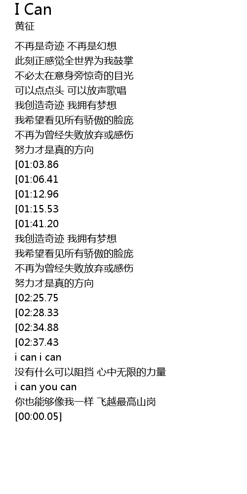 | [02:08.29] | 我创造奇迹 我拥有梦想 |