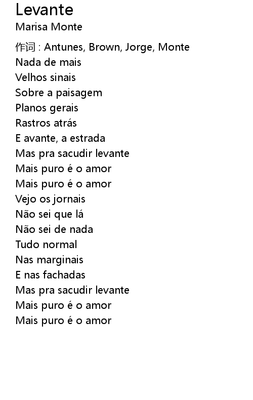 | 作词 : Antunes, Brown, Jorge, Monte | |