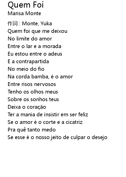| 歌曲 | Quem Foi |