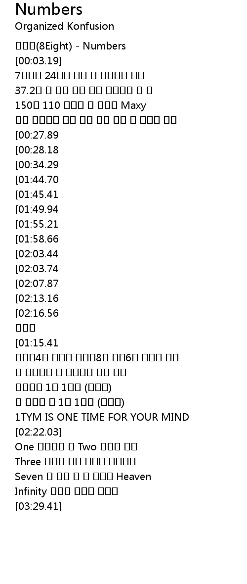 | [00:01.12] | 에이트(8Eight) - Numbers |