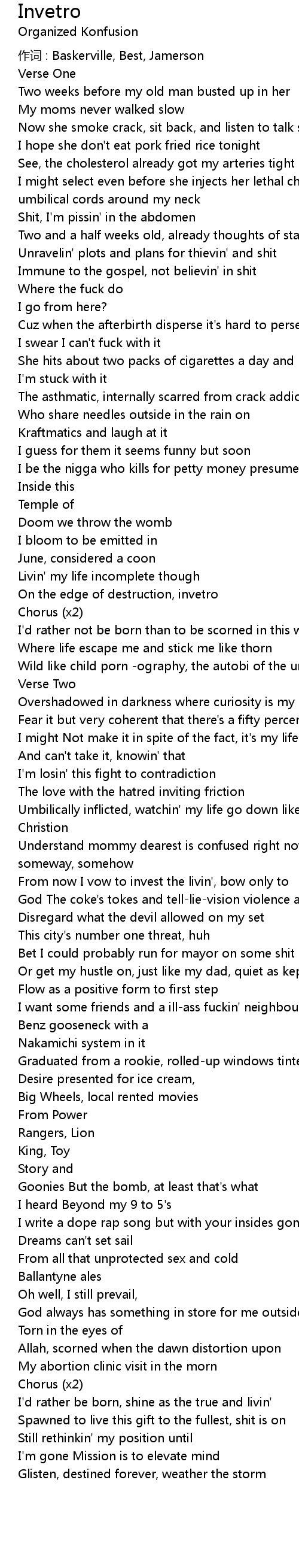 | I write a dope rap song but with your insides gone the vision is frail | |