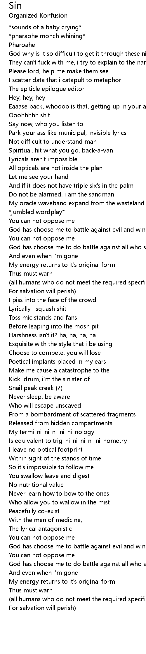 | Kick, drum, i'm the sinister of | |
