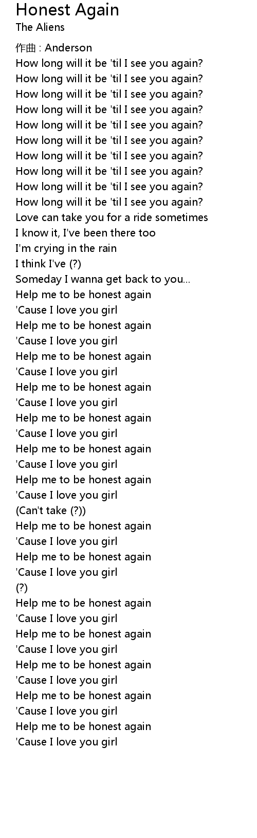 | 歌曲 | Honest Again |
