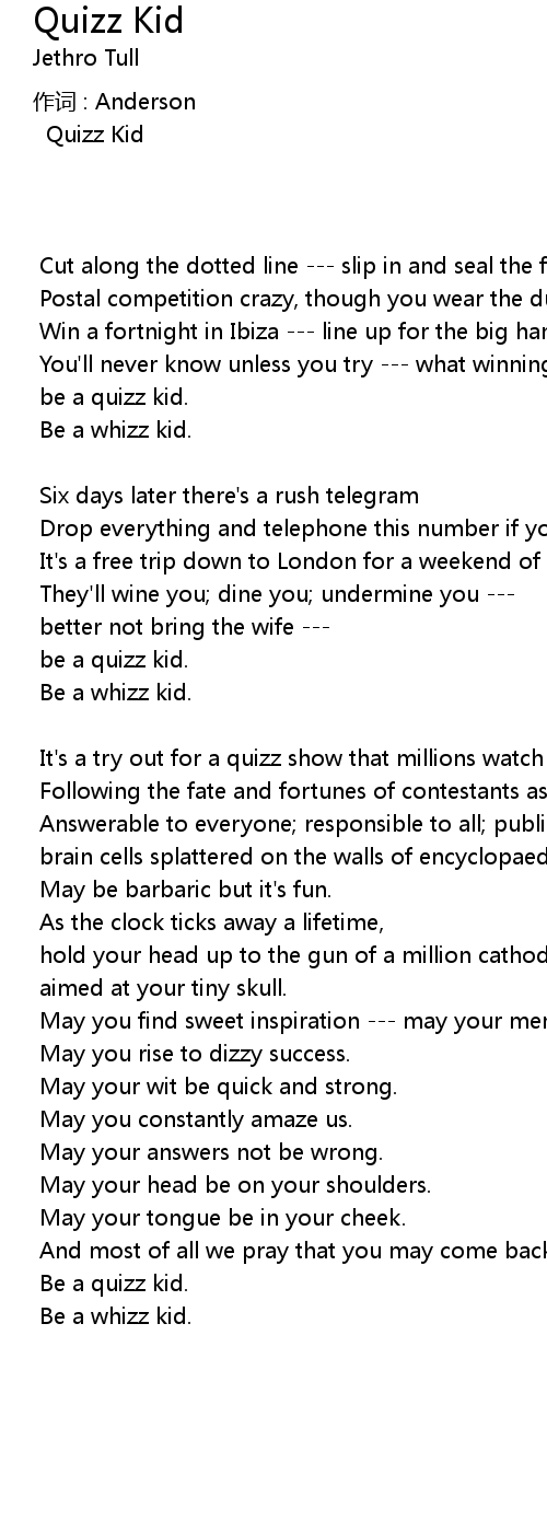 | be a quizz kid. | |