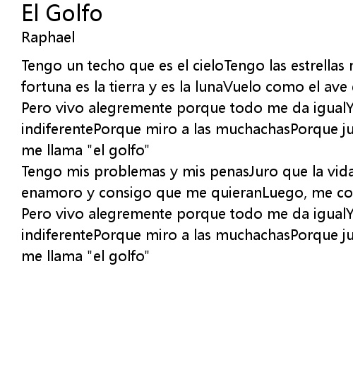 Pero vivo alegremente porque todo me da igualY me rio de mi sombraY ando siempre indiferentePorque miro a las muchachasPorque juego por el marTodo el mundo a mi me llama "el golfo" |