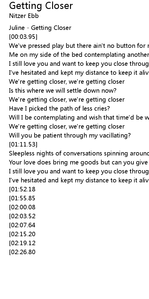 | [02:57.87][01:52.18] | We re getting closer, we re getting closer |