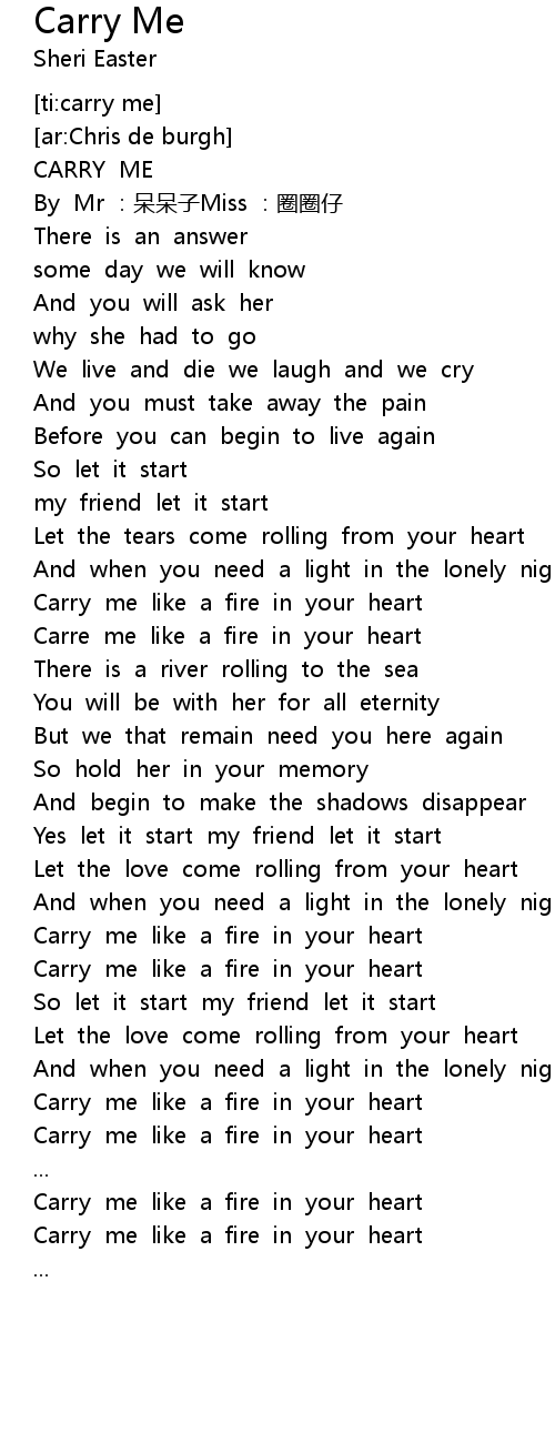 | [01:12.14] | Carre me like a fire in your heart |