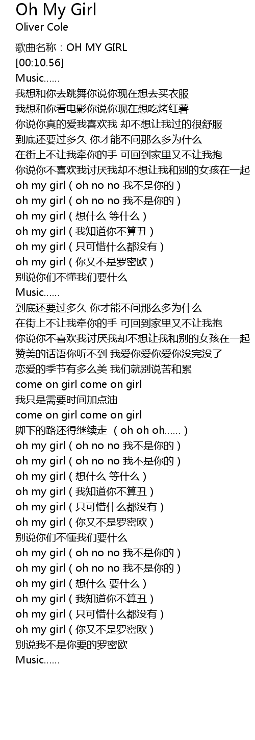 | [03:59.12] | oh my girl(oh no no 我不是你的) |