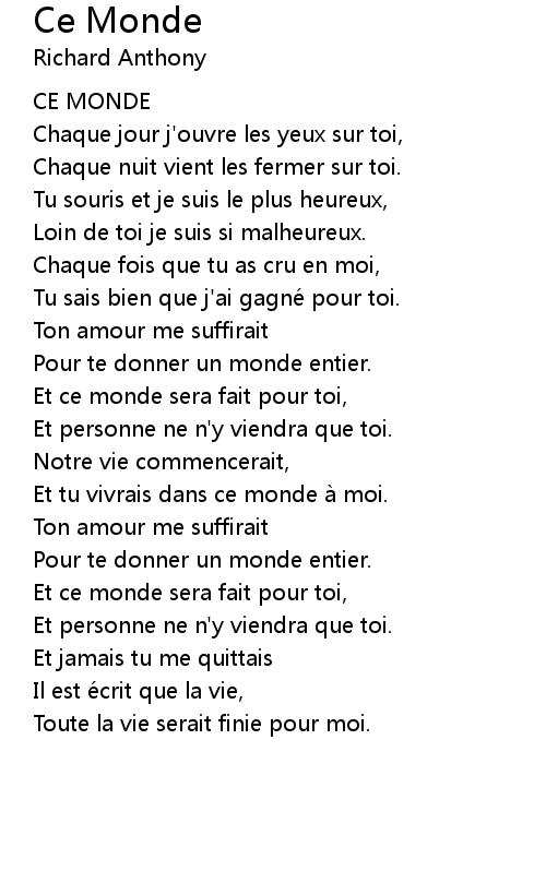 | Pour te donner un monde entier. | |