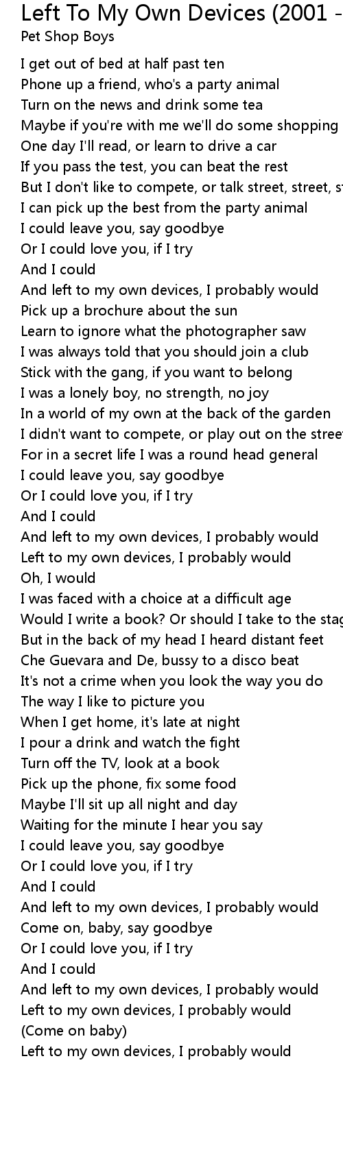| 歌曲 | Left To My Own Devices (2001 - Remaster) |