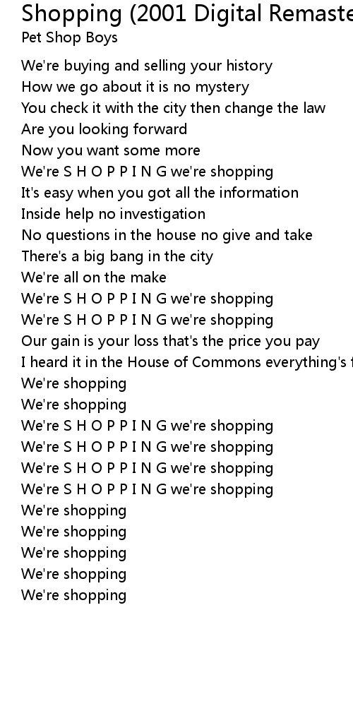 We're S H O P P I N G we're shopping |
