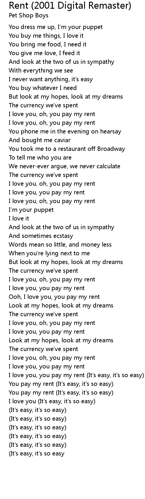 You pay my rent (It's easy, it's so easy) |