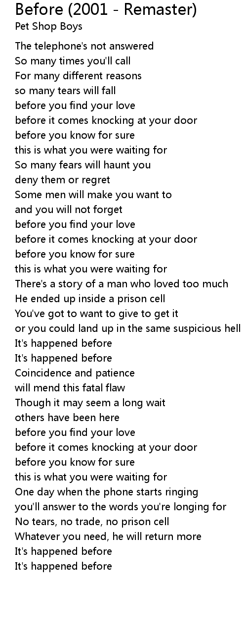 Before (2001 - Remaster) 歌词