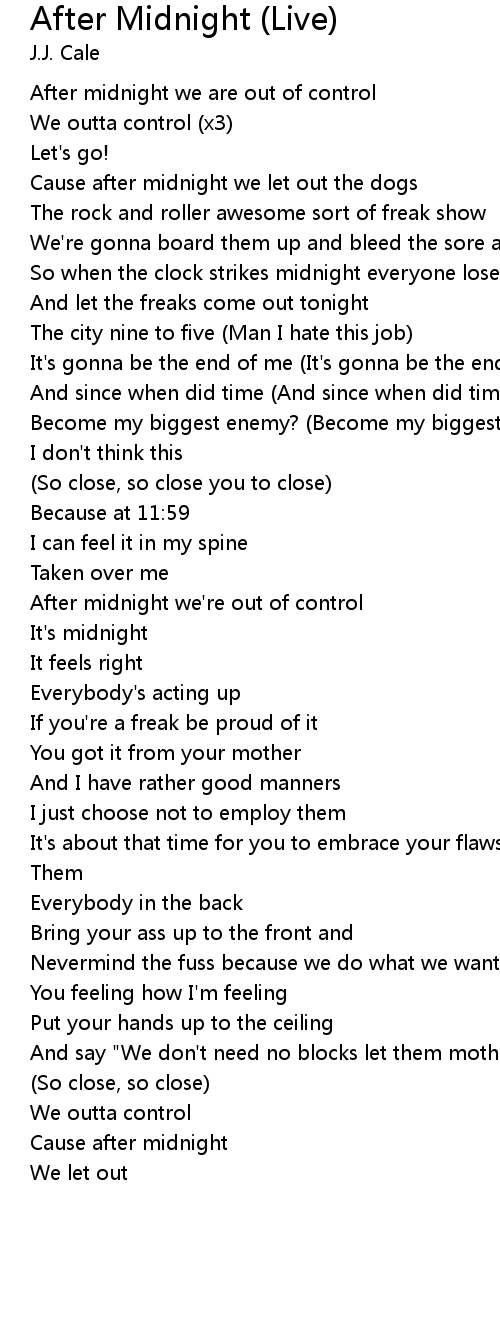 | After midnight we're out of control | |