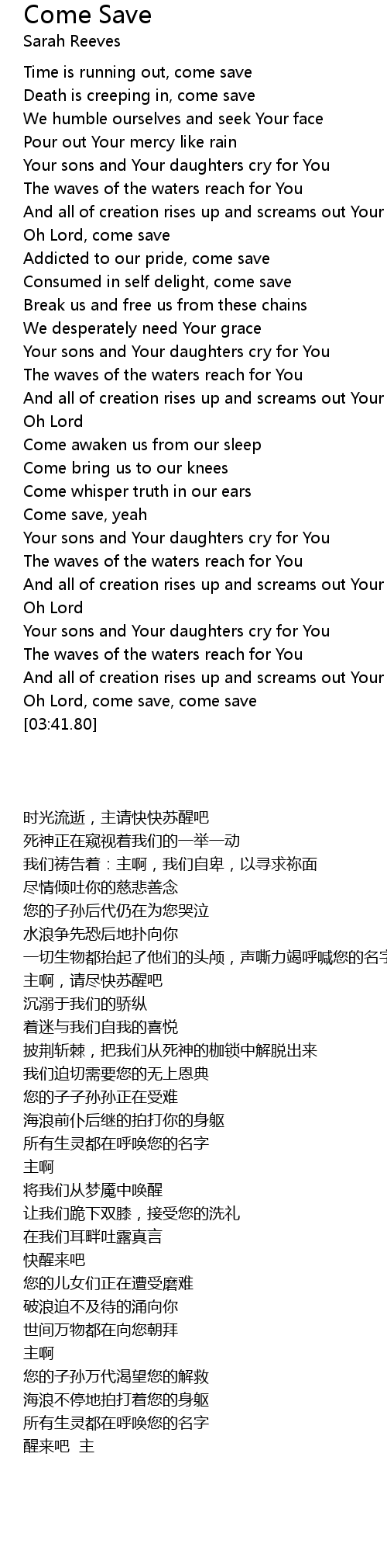 Oh Lord, come save, come save |