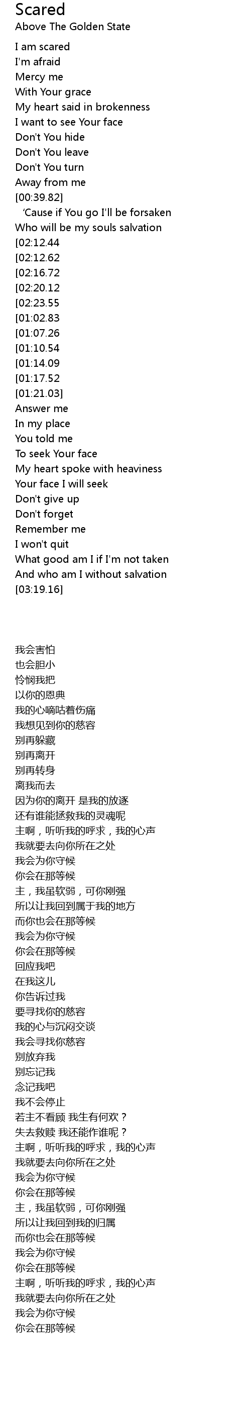 | [02:55.02][02:16.72][00:53.22] | Here I come to where You are |
